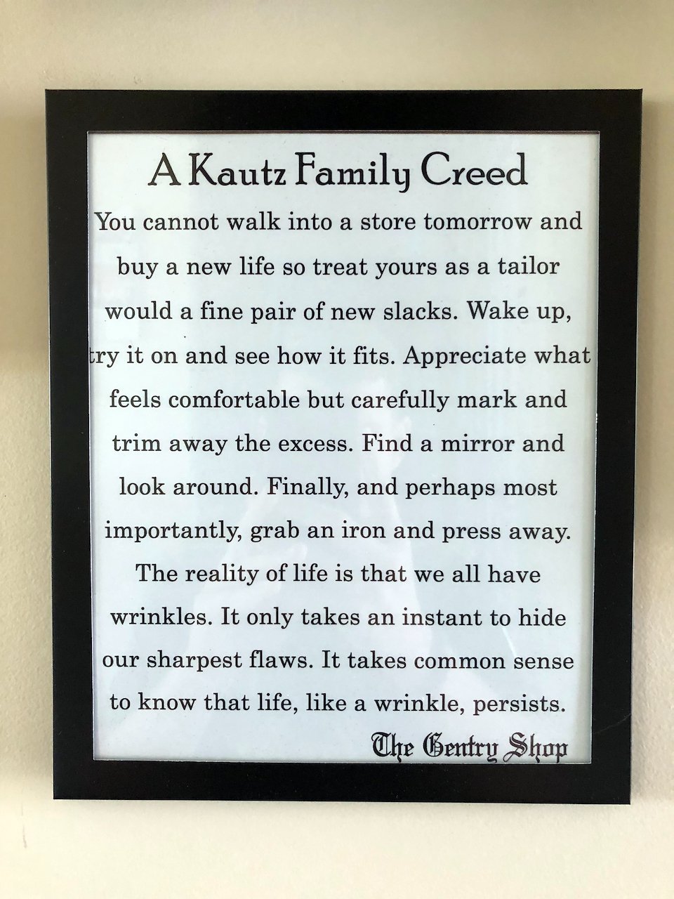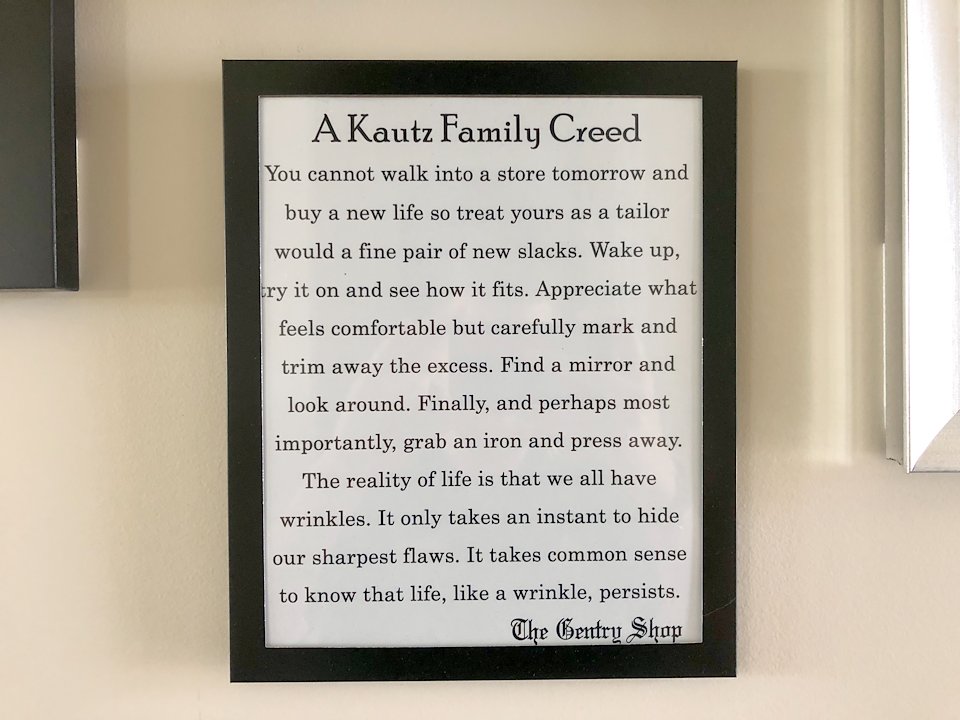 Inspired in large part by my father’s professional life – he’s owned and operated a speciality clothing store (The Gentry Shop, logo inset) for 35 years – I penned a family creed a few years ago that speaks to who I am as a person, and the lessons that’ve shaped my life.