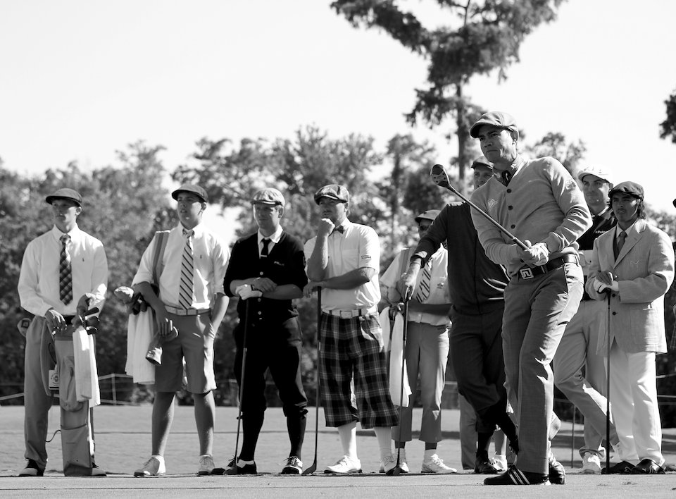 (From L->R) — Professional golfers (Background) Luke Donald, Graeme McDowell, Justin Rose, Keegan Bradley, Rickie Fowler and Camilo Villegas (foreground) — 2013 Zurich Classic — New Orleans, LA