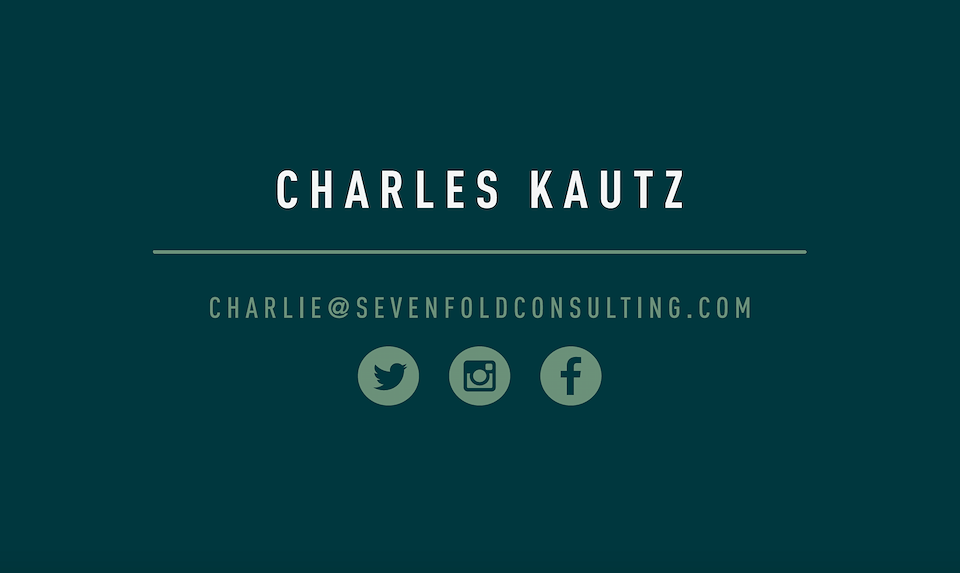 In 2015, I made the decision to venture out on my own and start an independent consulting firm focused on marketing and management. From inspiration to execution, I worked with a very talented friend of mine named Chris Piniarski (pushpincreativegroup.com) to create a brand identity for my business, named Sevenfold Consulting. The naming convention was inspired by two primary influences: (1) first, the promise of offering expert capability in a range of functions (i.e. seven) including marketing and management consulting, copywriting, social media, email, photography, strategy, etc and (2) a company called Robert Talbott clothiers, which makes a hand-crafted necktie product called “Sevenfold”, which is immaculately and precisely created without the use of sewing or stitching.