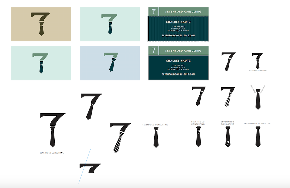 Some background: My father has long carried Robert Talbott ties in his speciality clothing store and I’ve actually visited their headquarters in Monterey, California, where I was able to watch a Sevenfold tie being made in person. Hence, in the final product you see the design inspiration of a necktie as part of the number “7” iconography, which gives an elegance to the brand mark I was hoping to achieve. Included here is the final brand identity, including the logo, inspiration board and one extra element from my business card.
